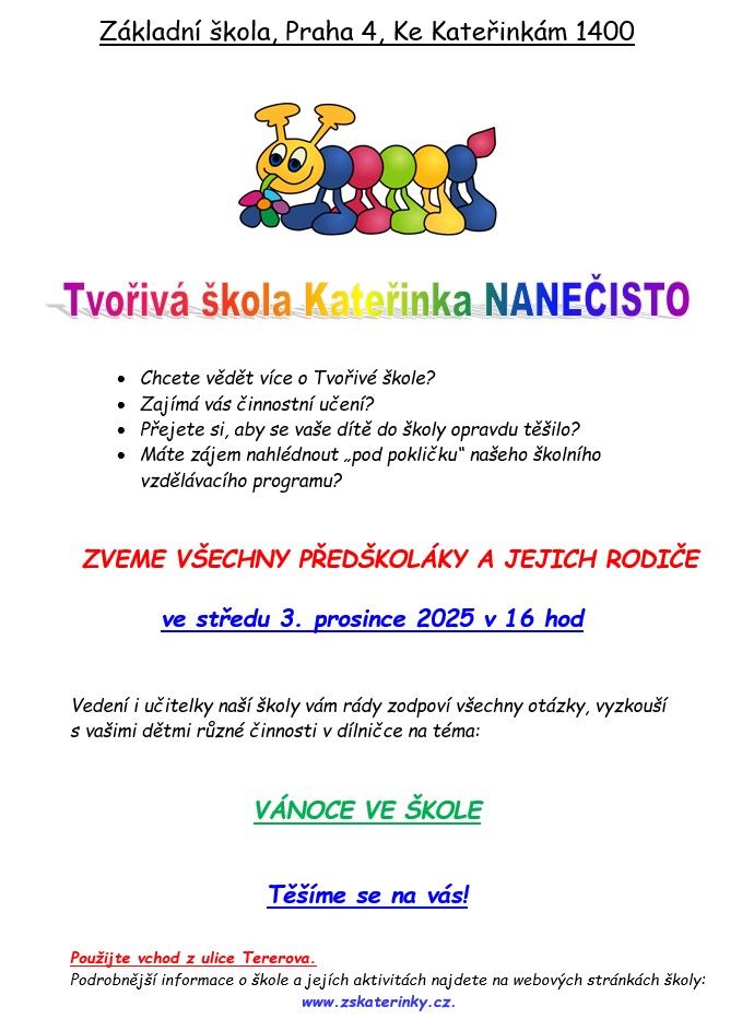 - Tvořivá škola nanečisto (vstup z ulice Tererova)